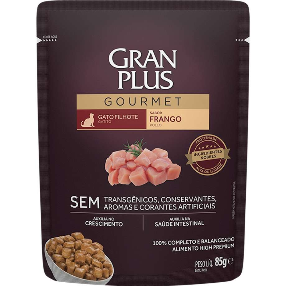 Ração Úmida Granplus Gourmet Sachê Para Gatos Filhotes Sabor Frango 85gr